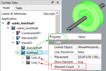 To do this, click in the tree structure on AsWheel, then go to the Properties tab under the tree structure, in the Link part, and set Element Count to 2.