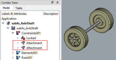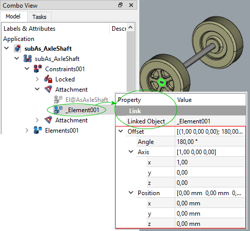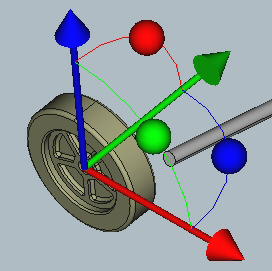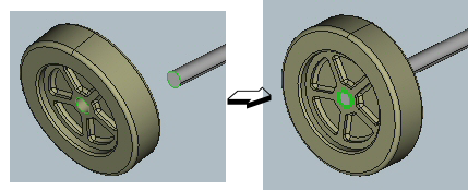 Select in the tree the constraint element of the axis (defined in the preparation phase) corresponding to the end circle of the axis, then while holding down the Ctrl key, select in the tree the constraint element of the first wheel instance corresponding to the circle of the wheel