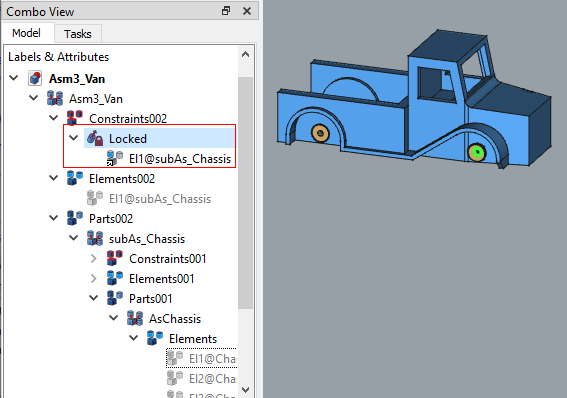 Select in the tree any constraint element of the object to fix defined in the preparation phase, then click on the Locked constraint .